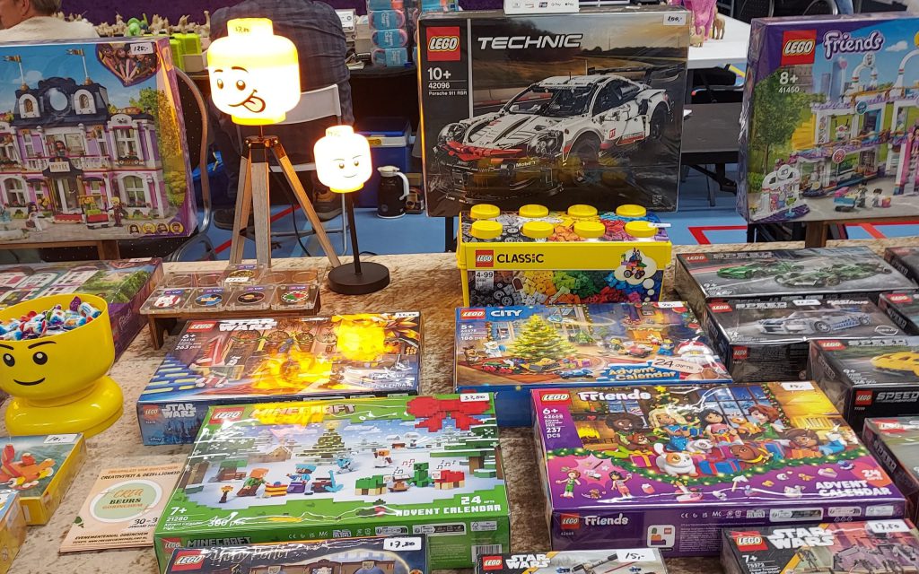 Verkoop van 3d pakketjes en boeken met plaatjes en patronen om zelf kaarten te maken en verkoop van lego en houten speelgoed
