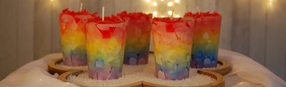 Verkoop diverse soorten (geur)kaarsen zoals mozaiekkaarsen, confetti kaarsen, drijfkaarsen en geldkaarsen. Ook maken en verkopen wij kant en klare pakketjes om thuis een kaart te