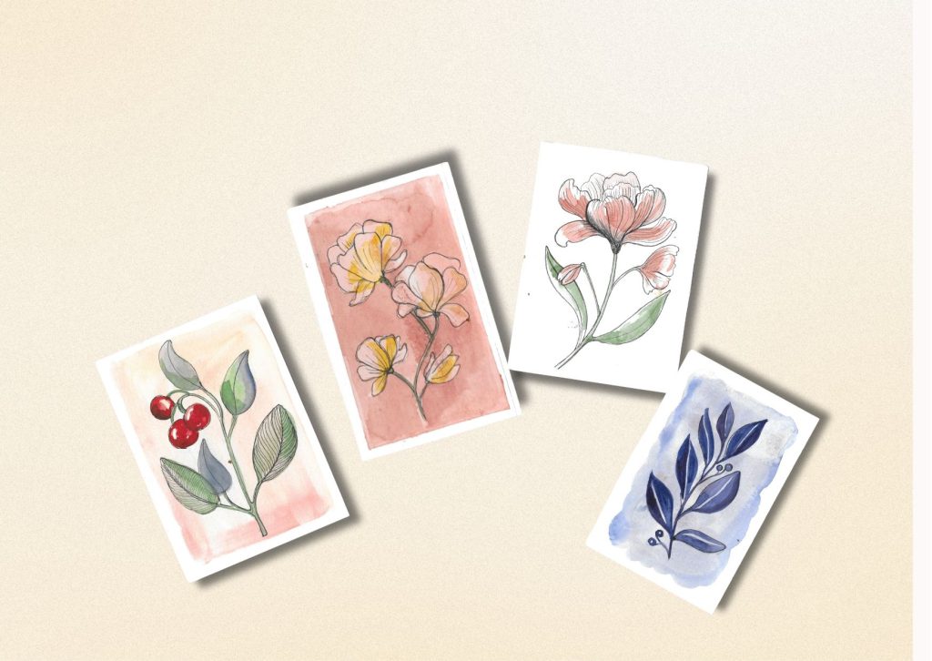 In deze workshop ga je aan de slag met het beschilderen en tekenen van ansichtkaarten en boekenleggers, geïnspireerd door bloemen en planten. Je kiest een blanco kaart of boekenlegger en leert hoe je met fineliner en aquarel een eigen mooie ontwerp maakt.