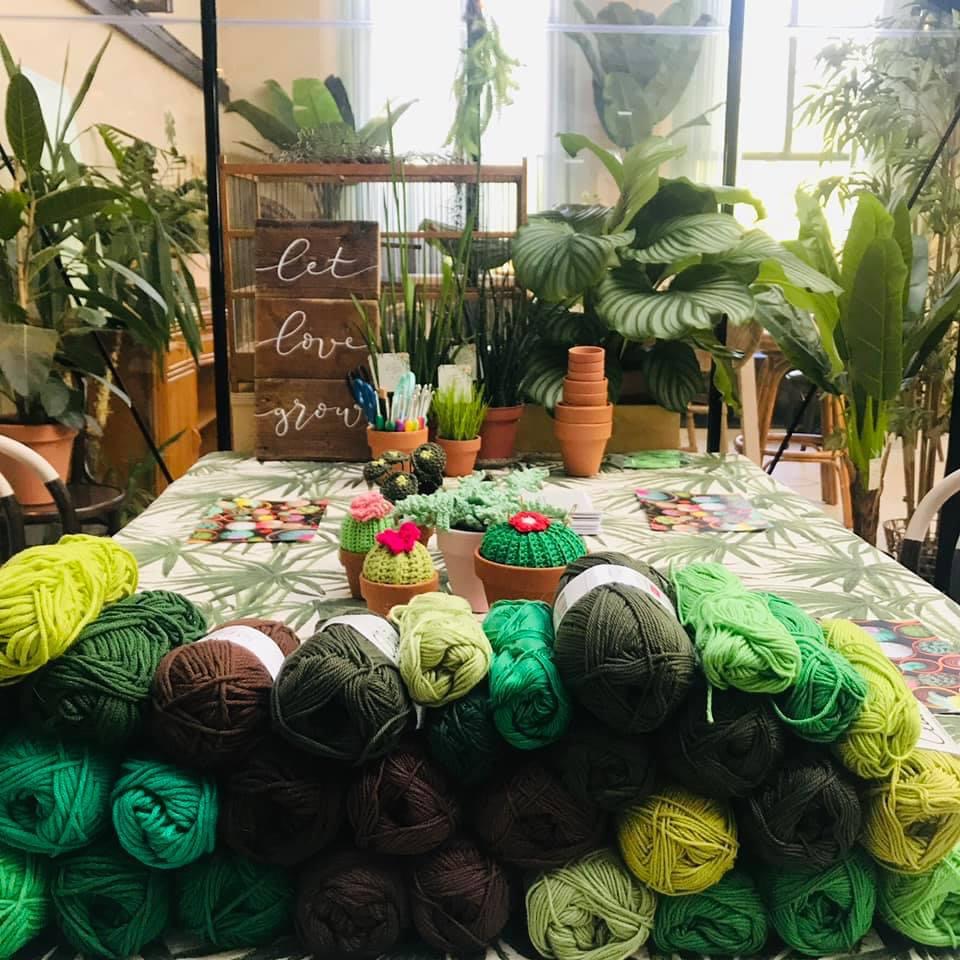 Botanische haakworkshops, haakpatronen, haakpatronen van bloemen en planten, botanische DIY-kits, Grab & GO mini plantjes haken.