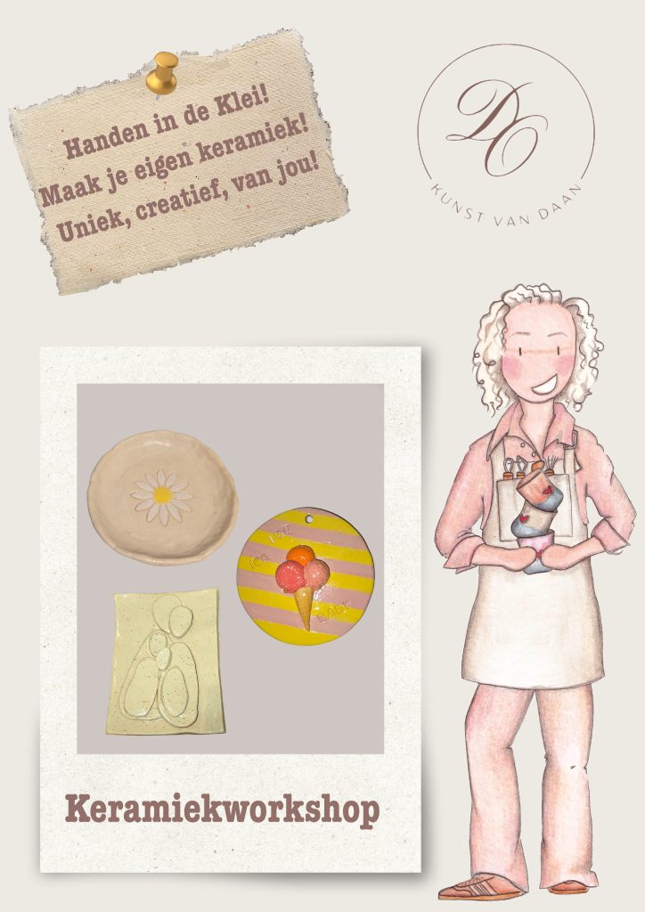 Met je handen in de klei, ben je even helemaal uit je hoofd! Kom je eigen keramieken item maken en ik heb zelf ook veel