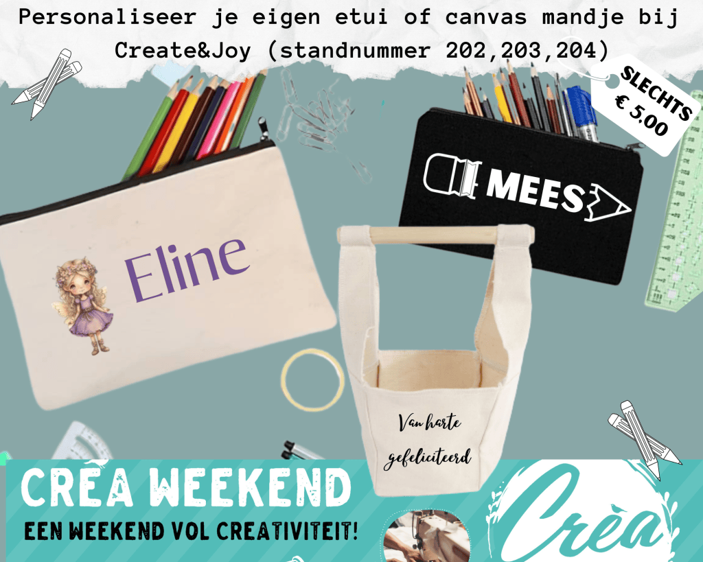 Werk aan je eigen etui of canvas mandje bij Create&Joy!