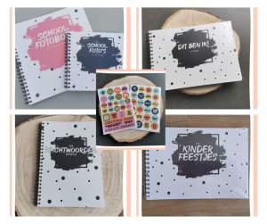 Invulboeken, scrapbooks en scrapbook benodigdheden, figuurponsen, stationary, schoolfotoboeken, washi tpa, stickervellen, invulkaarten en verrassingspakketjes.