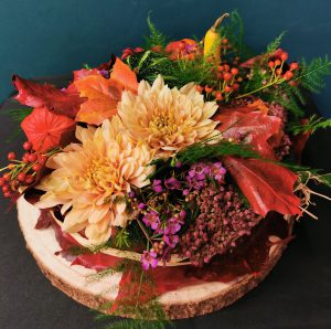 Bij deze workshop van Bloemenhuis Vita Nova kan je een bloementaart maken met diverse soorten groen en bloemen. echt herfst en fleurig.