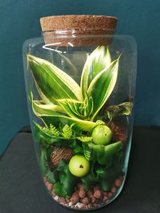 Bij deze workshop kan je een glazen pot met verlichting vullen met korrels, diverse planten en leuke bijproducten.