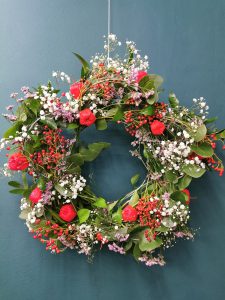 Bij deze workshop kan je een hangende krans maken van een metalen ring gevuld met diverse soorten groen en gips die kan indrogen.