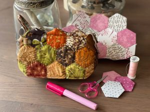 Bij de stand van Marrie’s Atelier kun je dit leuke make-up / materialentasje maken, dit wordt met een leuke en makkelijke quilt techniek in elkaar…