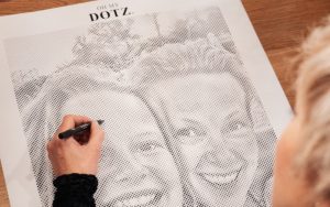 Het printen van jouw stippelschilderij duurt slechts 2 minuutjes. Dus zorg dat je jouw foto bij de hand hebt als je naar de stand komt.