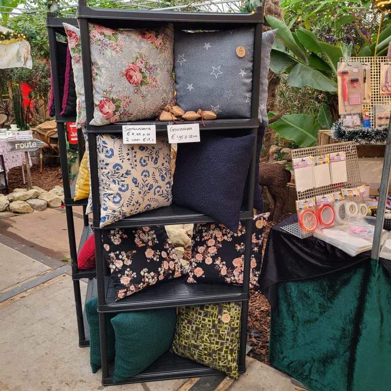 Hier vind je allerlei hobbymaterialen voor het maken van wenskaarten, zelfgemaakte sierkussens en versierde handdoeken/gastendoekjes.