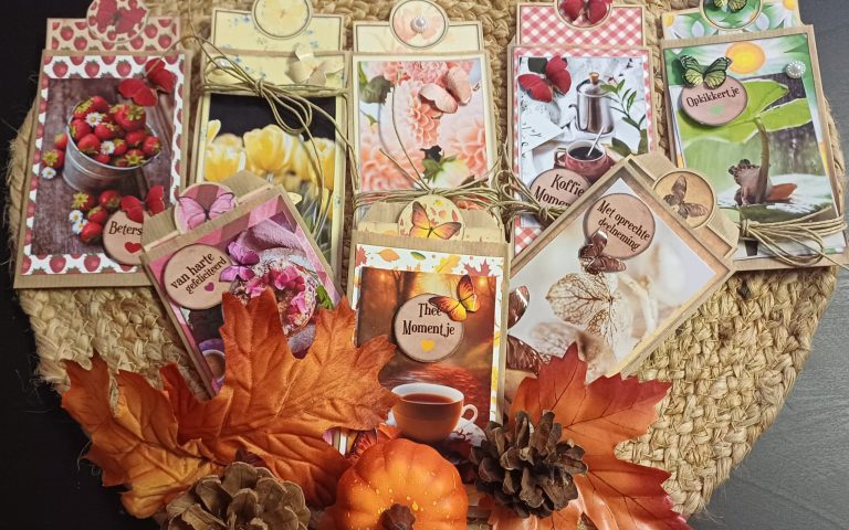 Laat je inspireren door mijn mooie assortiment aan hobbyartikelen. Hobbypakketjes voor het maken van doosjes, kaarten en koffie & theecadeautjes.