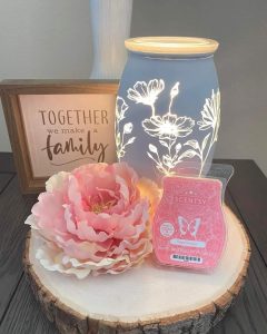 Scentsy, elektrische warmers die wax verwarmen op lage temperatuur. Tevens workshop geurbloem inkleuren.