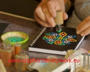 Workshop van het Staphorster Stipwerk met kaarten maken boekjes, kleerhangers, ronde tasje, kerstballen. U kunt uw eigen cadeautjes maken bij onze workshopkraam.